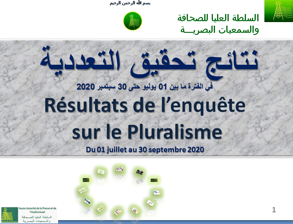 نظمت السلطة العليا للصحافة والسمعيات البصرية اليوم الأربعاء فعالية تم خلالها إعلان نتائج تحقيق التعددية في وسائل الإعلام السمعية البصرية والذي أطلقته السلطة العليا نهاية السنة الماضية .